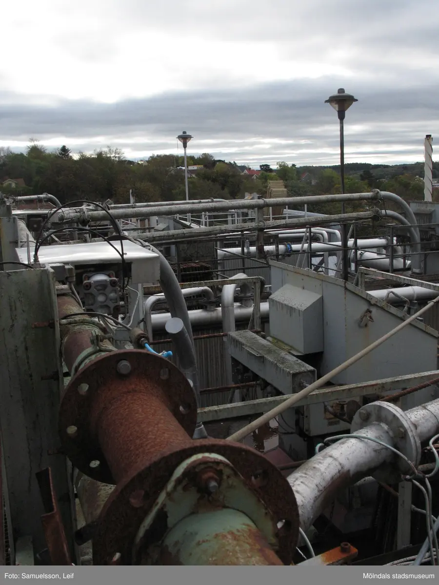 Rörledningar på byggnad vid Soabs industrianläggning i Mölndals Kvarnby, år 2007. Anläggningen användes vid fototillfället av Hexion Speciality Chemicals Sweden AB.