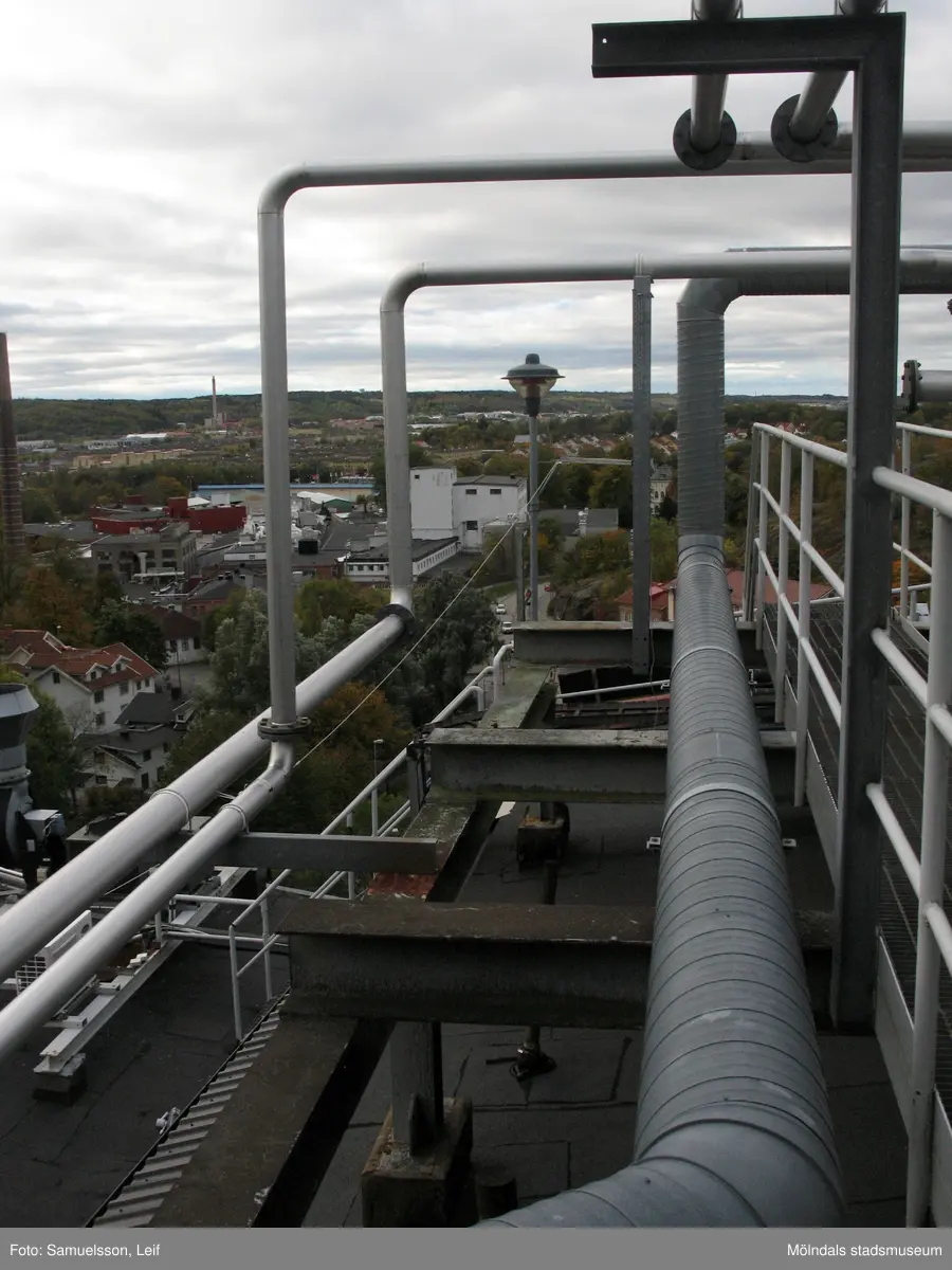 Rörledningar på byggnad vid Soabs industrianläggning i Mölndals Kvarnby, år 2007. Anläggningen användes vid fototillfället av Hexion Speciality Chemicals Sweden AB.