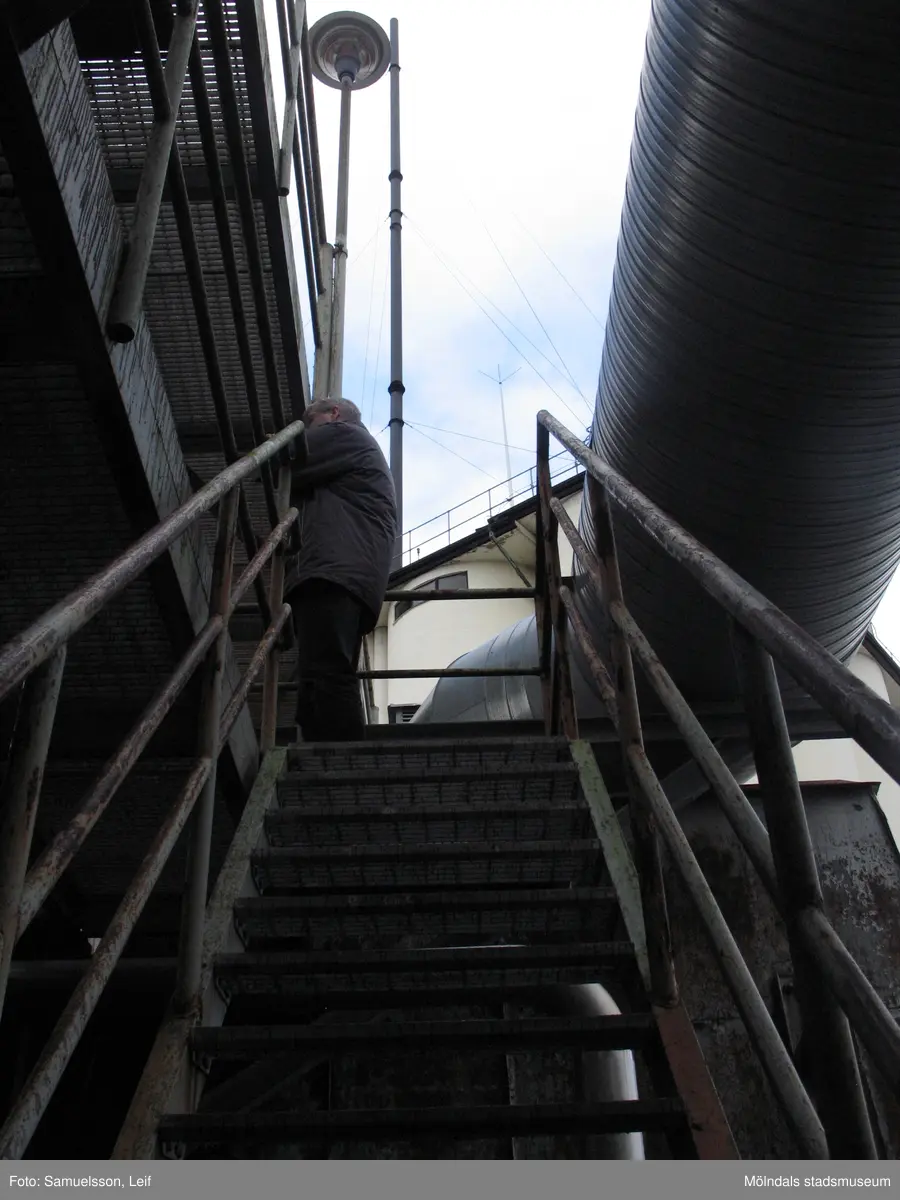 Trappa i byggnad vid Soabs industrianläggning i Mölndals Kvarnby, år 2007. En man är på väg upp. Anläggningen användes vid fototillfället av Hexion Speciality Chemicals Sweden AB.