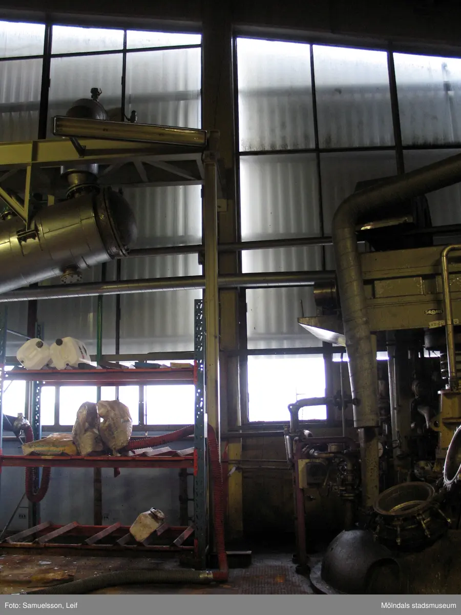 Titel: Rum med en maskin. Interiörfotografi från byggnad vid Soabs industrianläggning i Mölndals Kvarnby, år 2007. Anläggningen användes vid fototillfället av Hexion Speciality Chemicals Sweden AB.