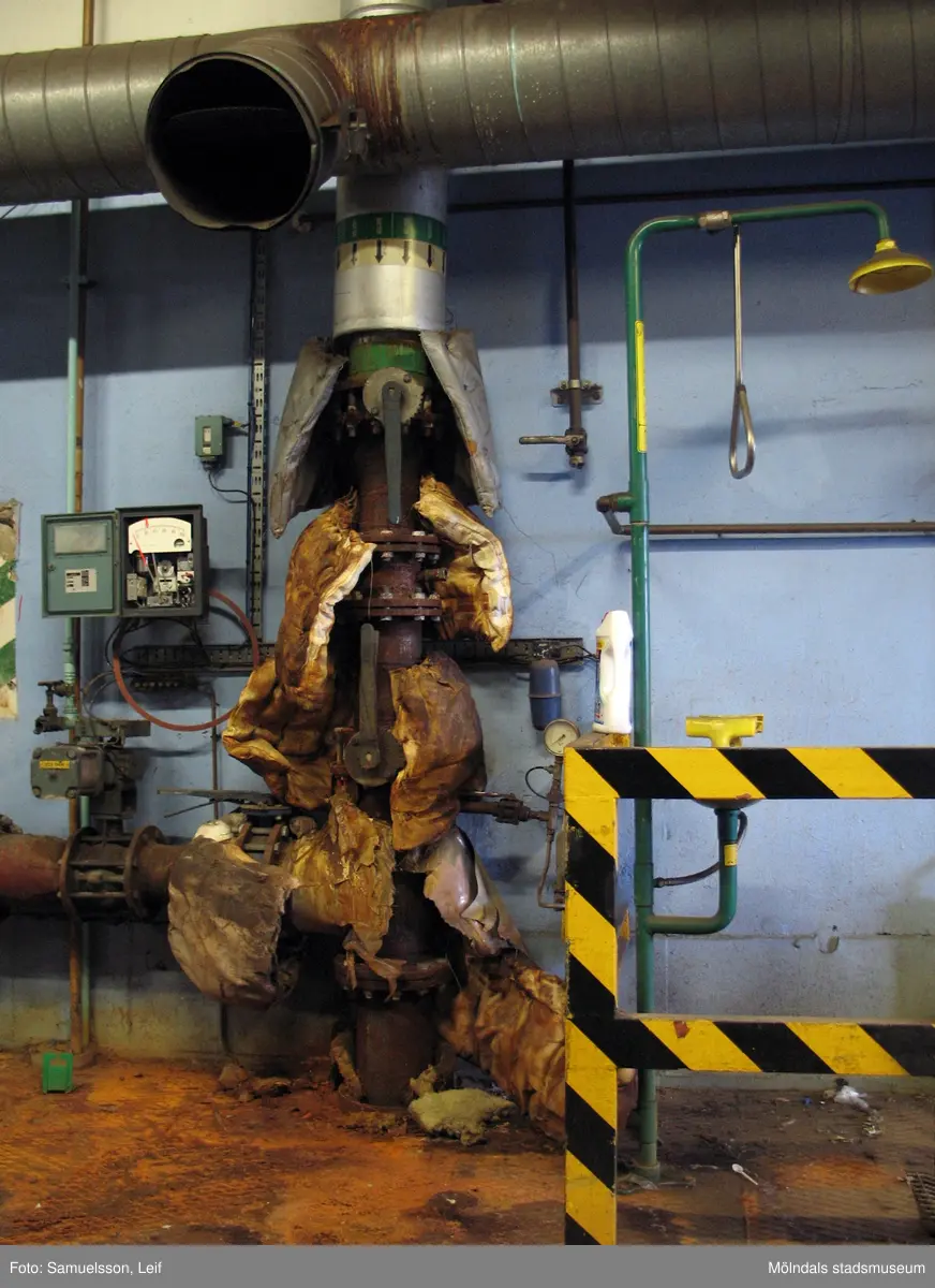 En maskin. Interiörfotografi från byggnad vid Soabs industrianläggning i Mölndals Kvarnby, år 2007. Anläggningen användes vid fototillfället av Hexion Speciality Chemicals Sweden AB.
