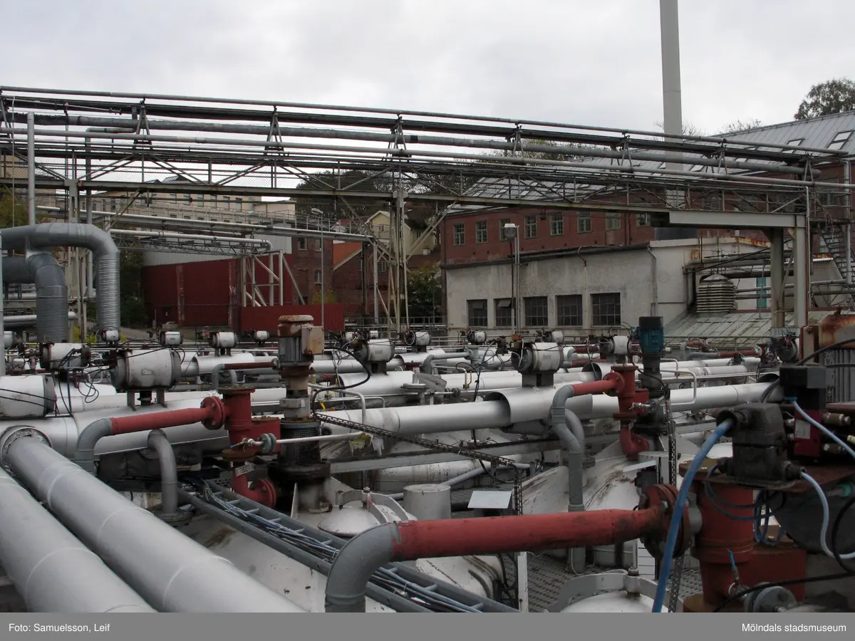 Byggnader vid Soabs industrianläggning på båda sidor om "Kråkan" (Kvarnbygatan) i Mölndals Kvarnby, år 2007. Anläggningen användes vid fototillfället av Hexion Speciality Chemicals Sweden AB.