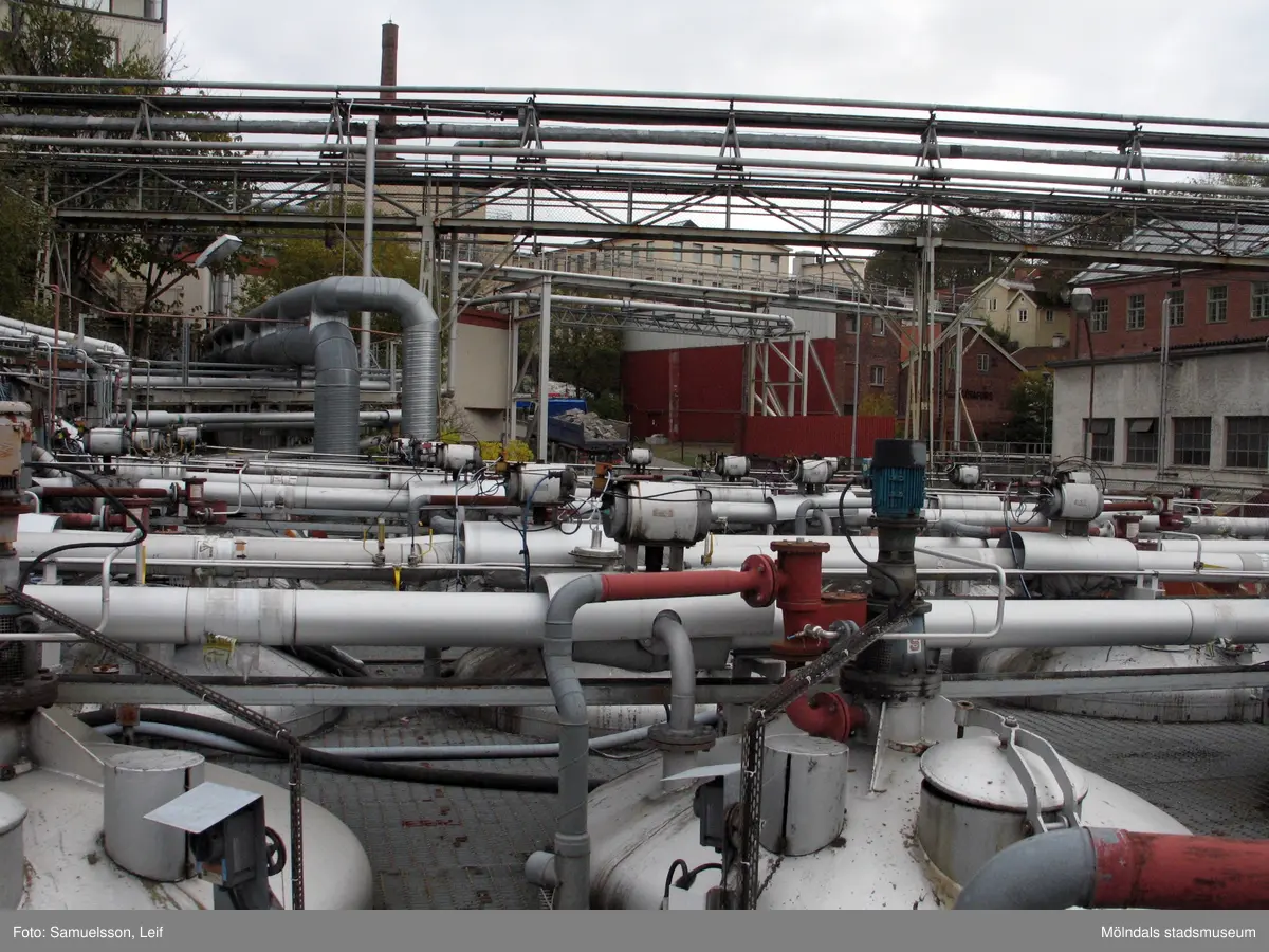 Byggnader vid Soabs industrianläggning på båda sidor om "Kråkan" (Kvarnbygatan) i Mölndals Kvarnby, år 2007. Anläggningen användes vid fototillfället av Hexion Speciality Chemicals Sweden AB.