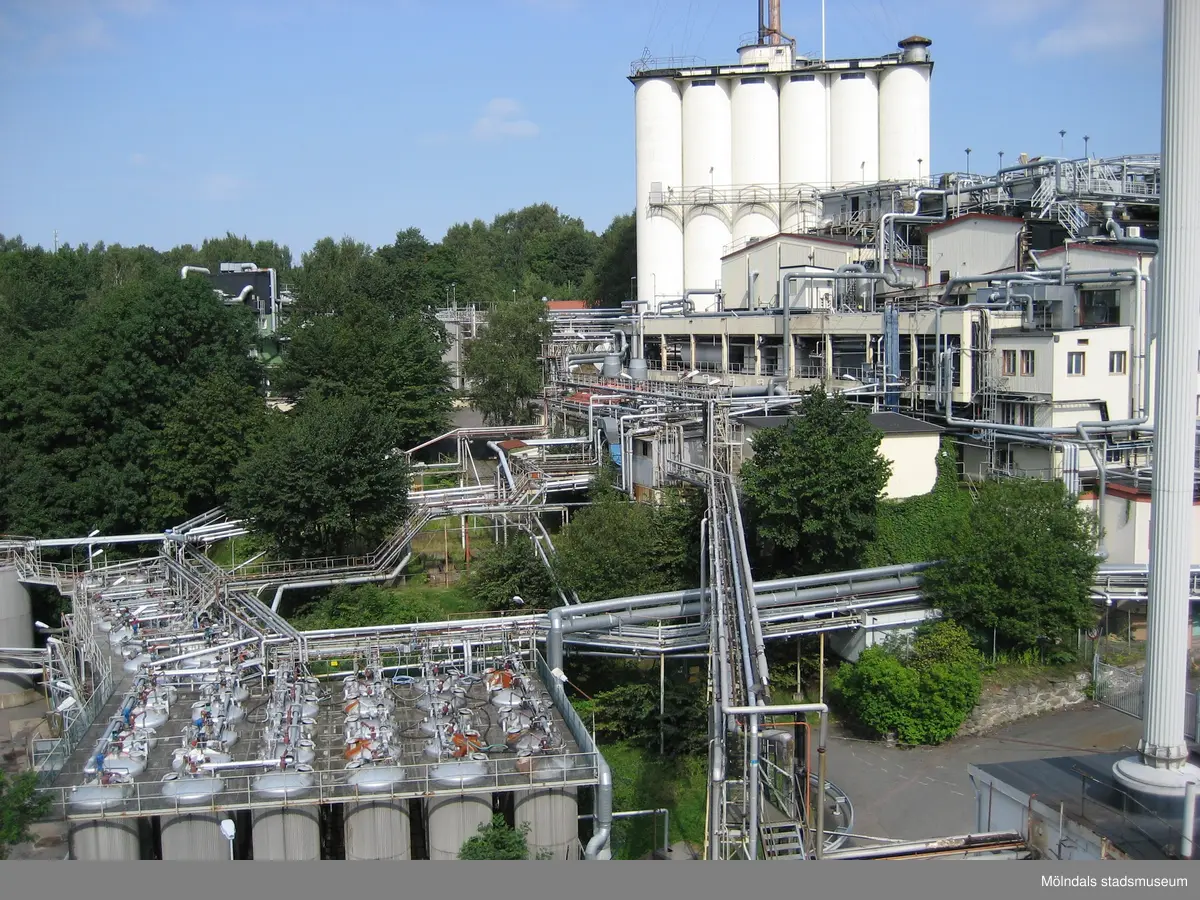 Titel: Vy över Soabs industriområde (linoljetillverkning) och dess silotorn år 2007. Verksamheten låg på båda sidor utmed Kvarnbygatan. Relaterade motiv: 2024_1159 - 1183.