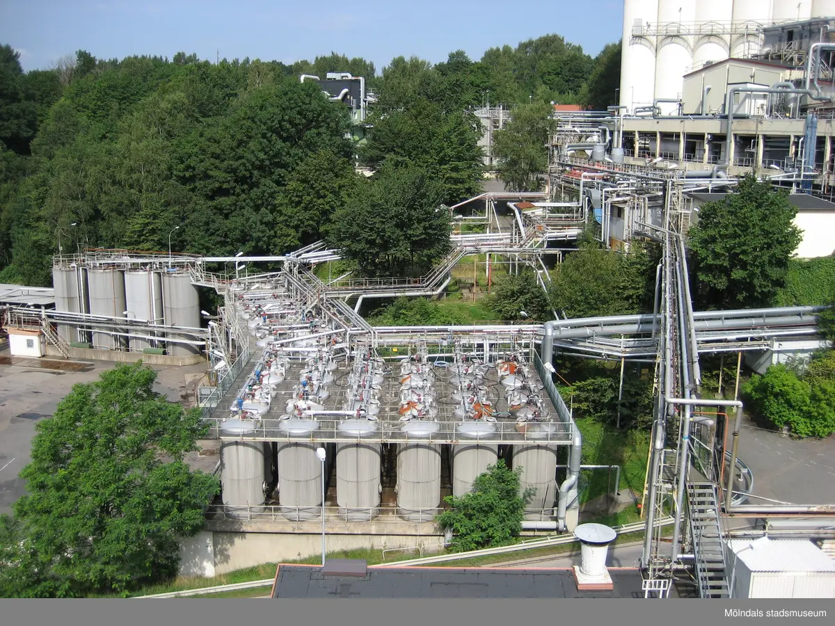 Titel: Vy över Soabs industriområde (linoljetillverkning) och dess silotorn år 2007. Verksamheten låg på båda sidor utmed Kvarnbygatan. Relaterade motiv: 2024_1159 - 1183.