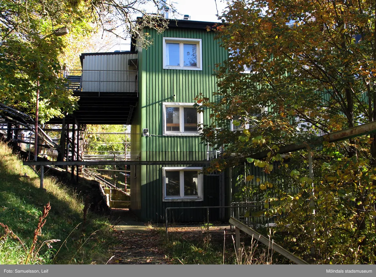 Titel: Grönmålad byggnad vid Soabs industrianläggning i Mölndals Kvarnby, år 2007. Anläggningen användes vid fototillfället av Hexion Speciality Chemicals Sweden AB.