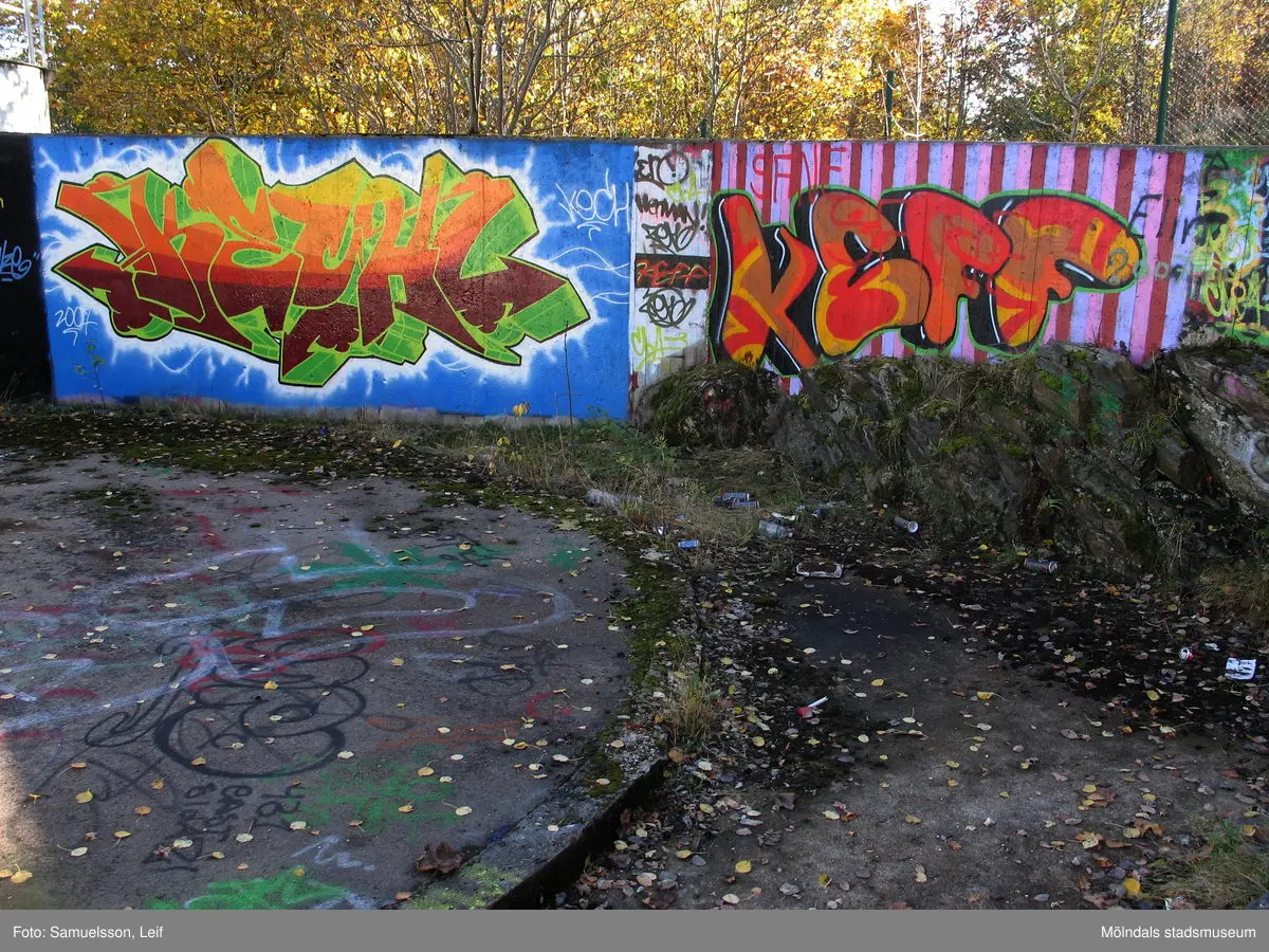 Graffiti vid Soabs industrianläggning i Mölndals Kvarnby, år 2007. Anläggningen användes vid fototillfället av Hexion Speciality Chemicals Sweden AB.