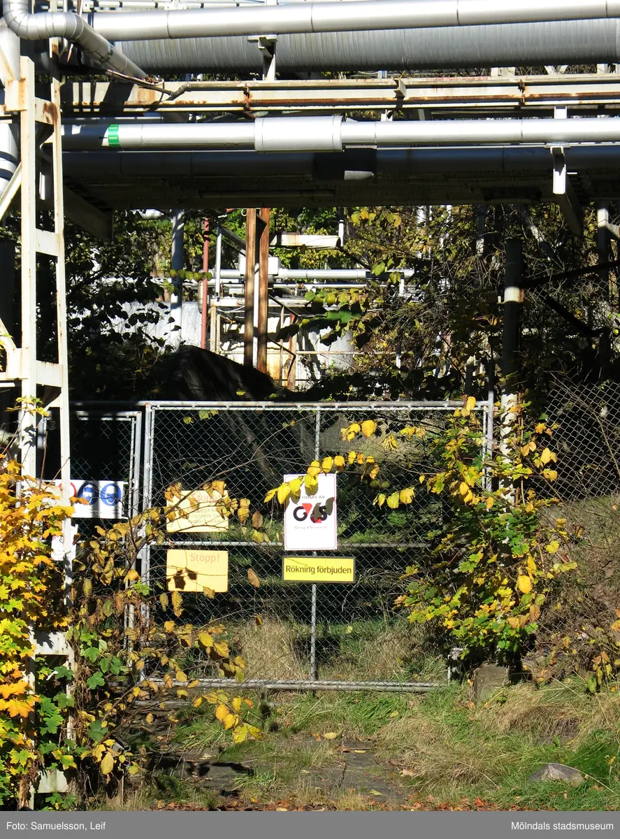 Ett flertal rörledningar samt en grind vid Soabs industrianläggning i Mölndals Kvarnby, år 2007. Anläggningen användes vid fototillfället av Hexion Speciality Chemicals Sweden AB.