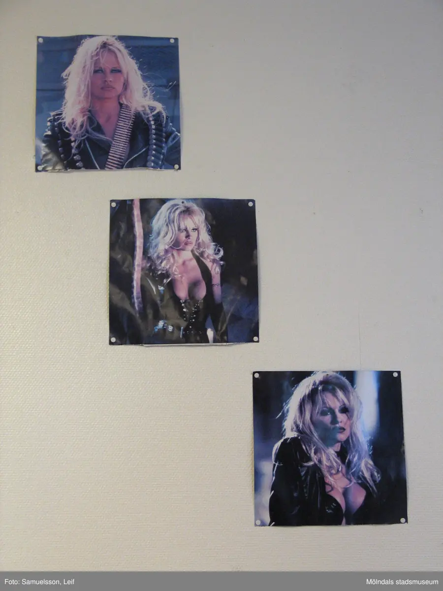 En vägg på vilken tre bilder av Pamela Anderson är uppsatta. Motiven är från filmen Barb Wire från 1996. Interiörfotografi från byggnad vid Soabs industrianläggning i Mölndals Kvarnby, år 2007. Anläggningen användes vid fototillfället av Hexion Speciality Chemicals Sweden AB.