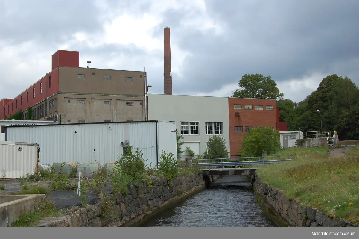 Byggnaderna 18, 19 och 20 efter att företaget hade lagts ner, Papyrus/Soab år 2010. Kvarnfallet rinner genom området.