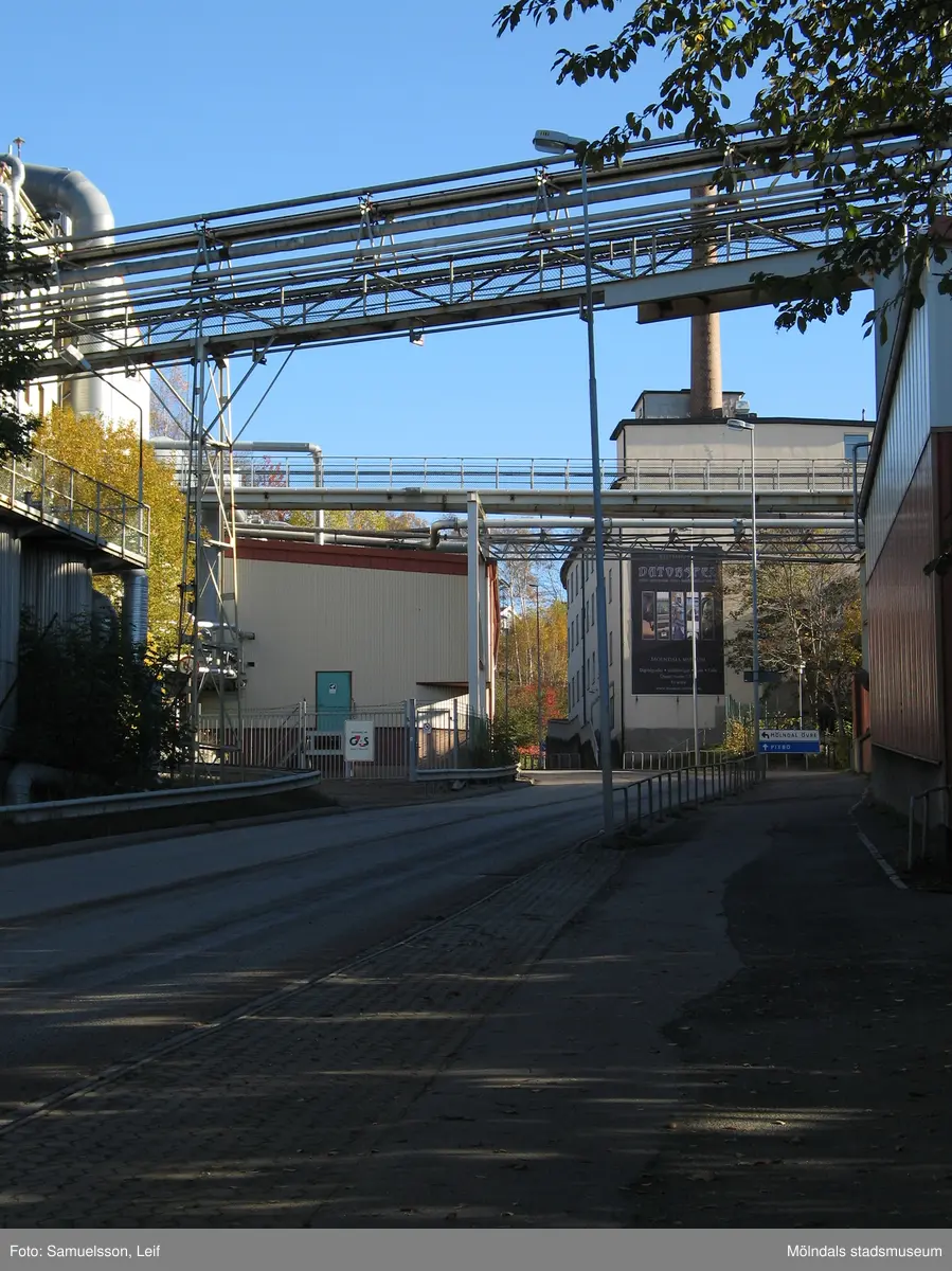 Byggnader vid Soabs industrianläggning på båda sidor om "Kråkan", Kvarnbygatan, i Mölndals Kvarnby, år 2007. Anläggningen användes vid fototillfället av Hexion Speciality Chemicals Sweden AB.