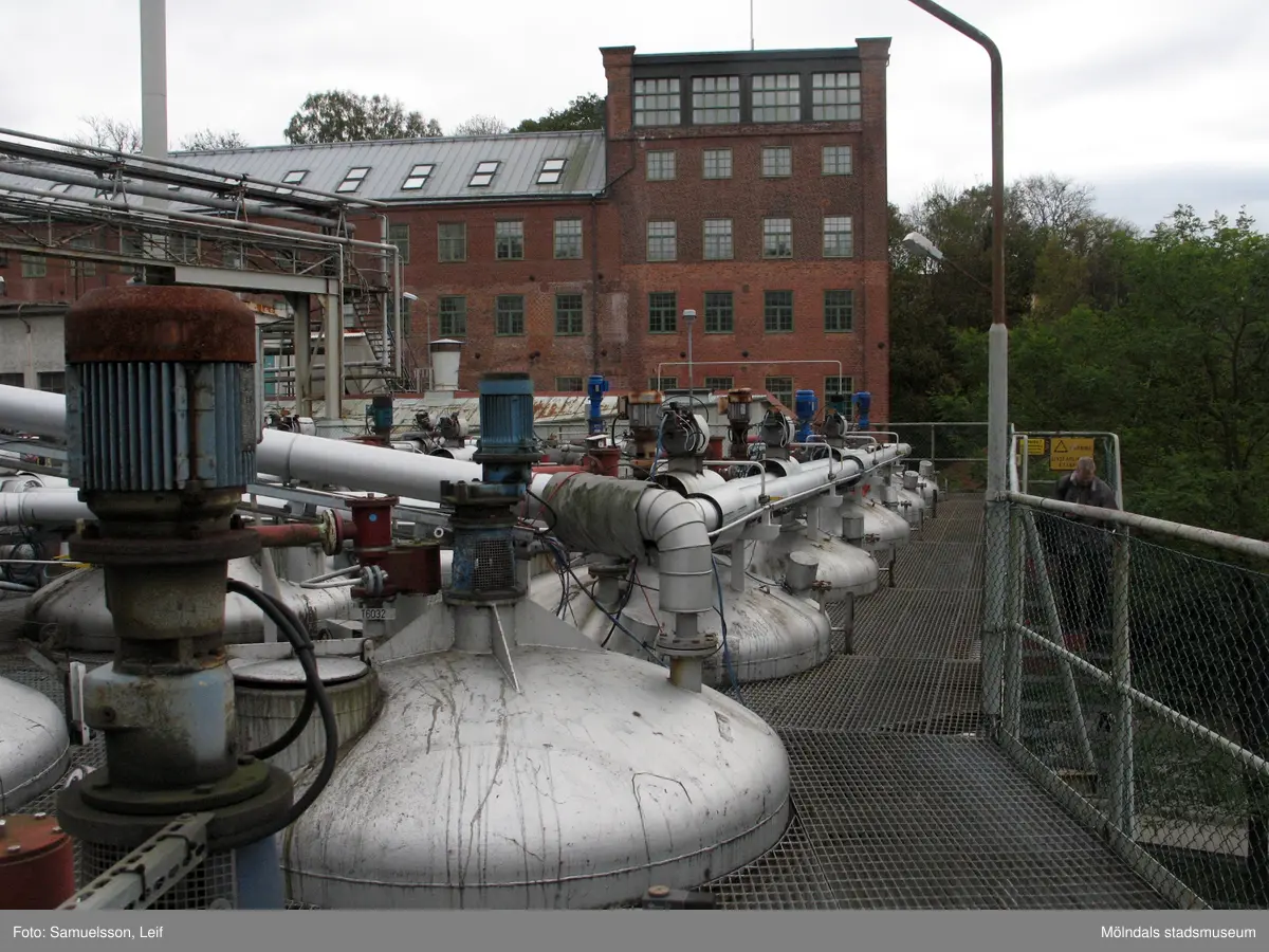 Taket på byggnad vid Soabs industrianläggning i Mölndals Kvarnby, år 2007. I bakgrunden Stora Götafors. Anläggningen användes vid fototillfället av Hexion Speciality Chemicals Sweden AB.