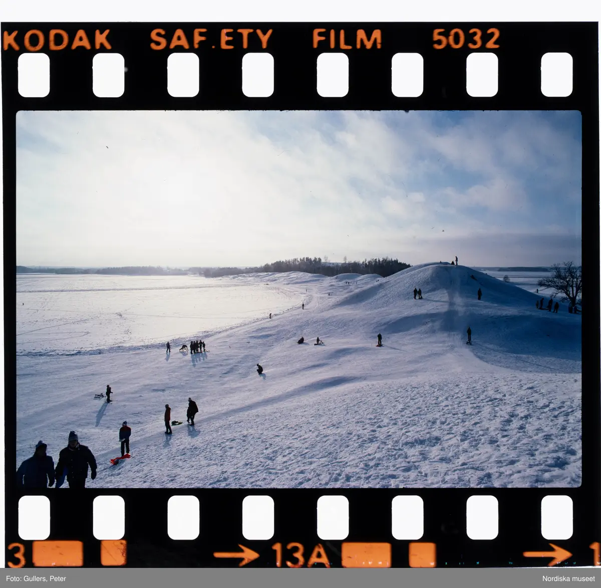 Titel: 2771/46 Landskap-natur Vinterlekar på Uppsala högar för kalendermotiv.