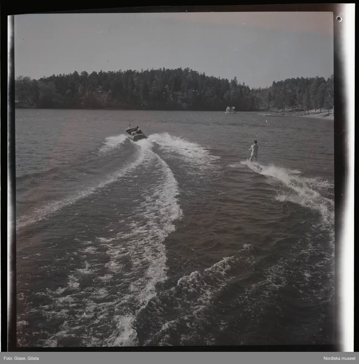 Titel: Vattenskidor, uppvisning vid Flaten, 1947.