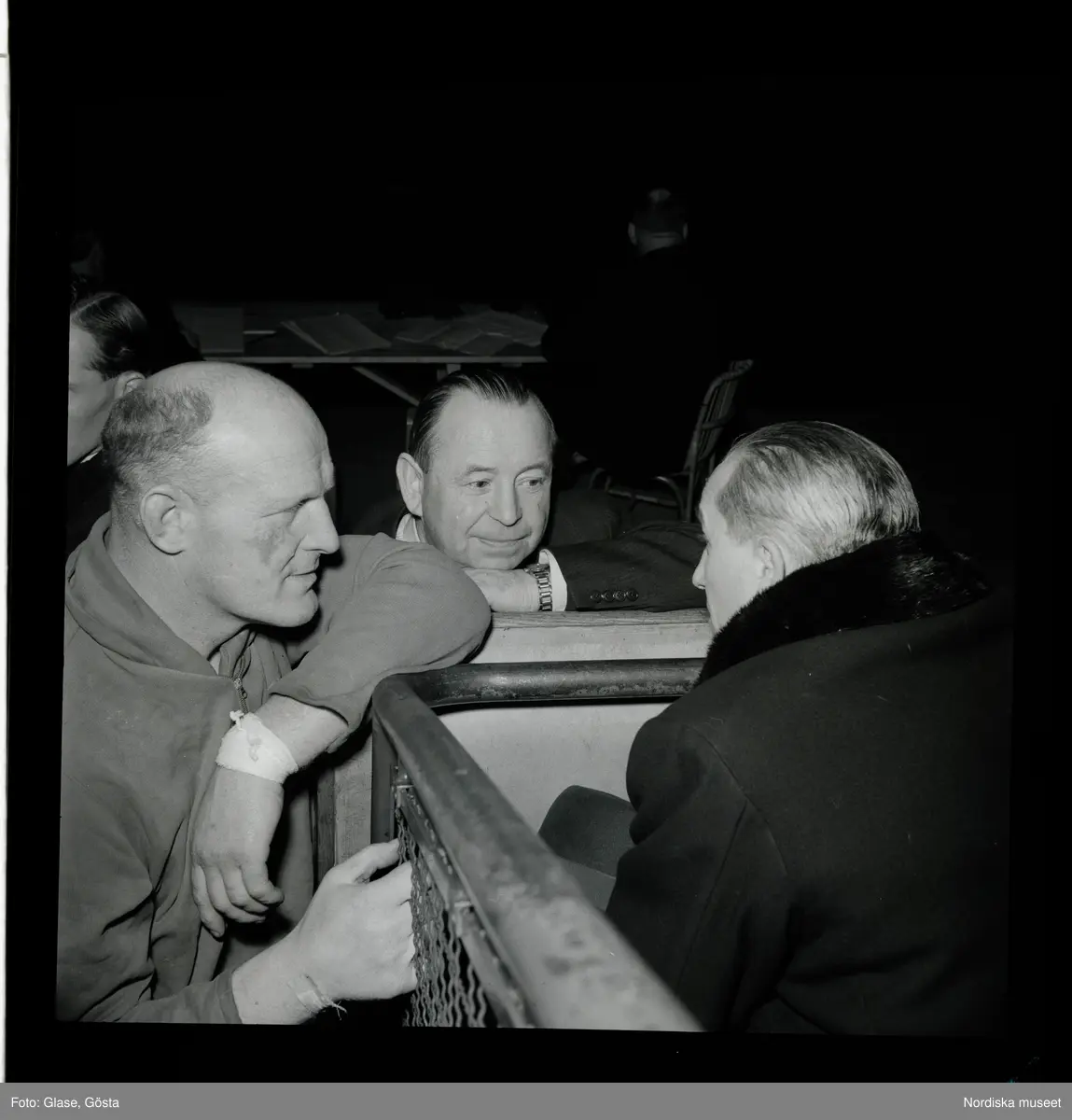Nyman, John, Sundsvall, till vänster i mitten Brunsell, till höger Tjeckoslovakiske brott-ordf. Mensik.