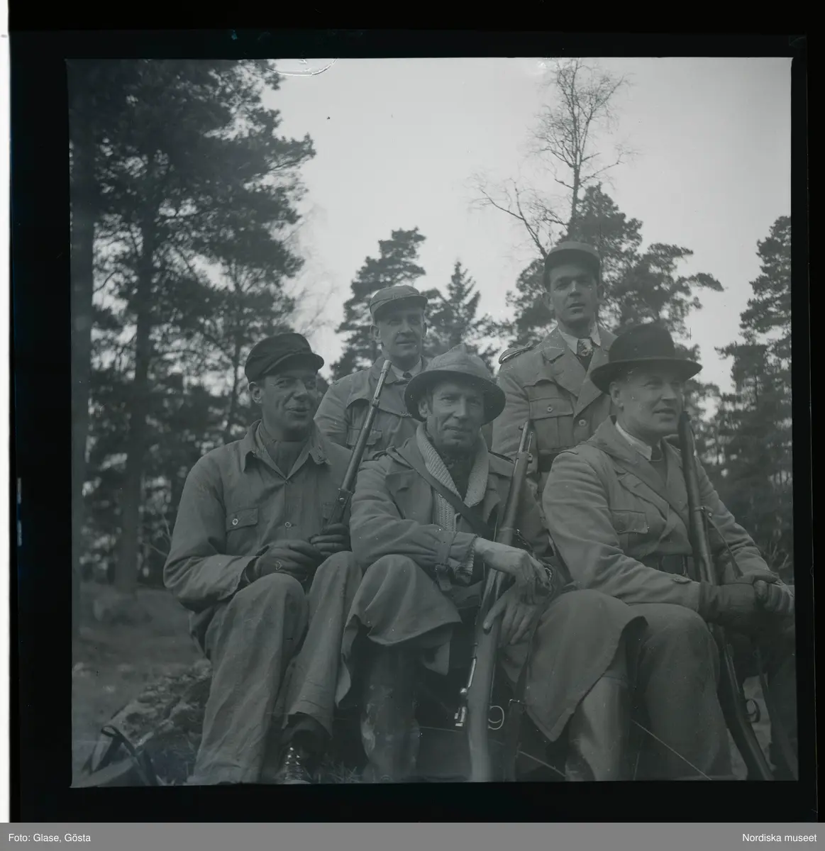 Titel: Niondekompanister, fältskytte, från v. Olle Hedersén, Lennart Tideström, Harald Hagner, Valter Krasse och John Gårdman.