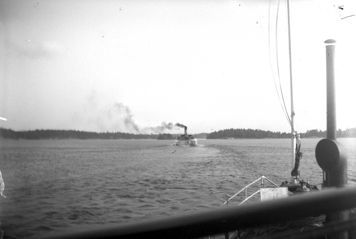 Fören av en båt. I bakgrunden ytterligare en ångbåt.