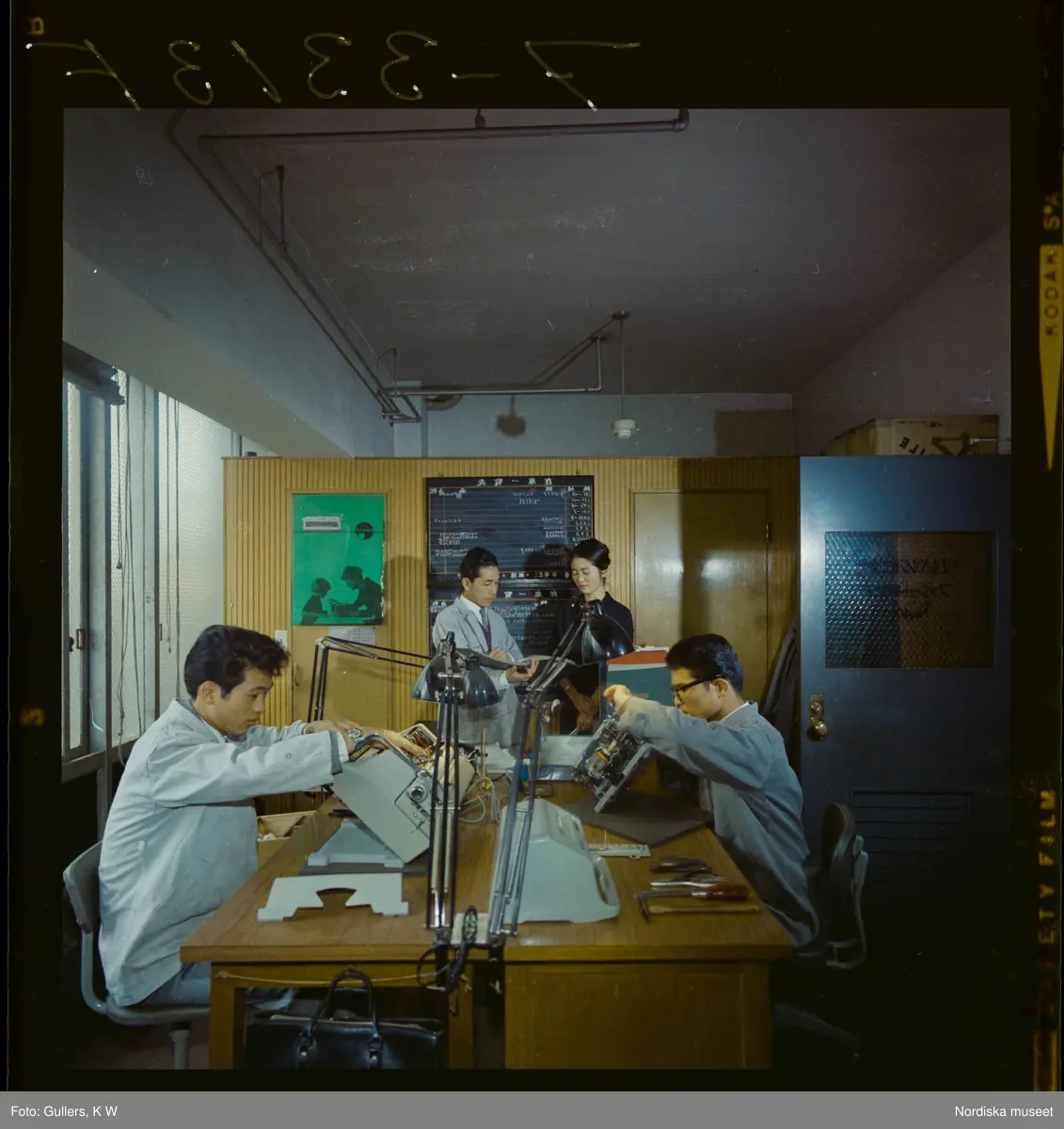 585/8 Facit Tokyo Daberg. Arbetare sätter ihop skrivmaskiner på ett arbetsrum.