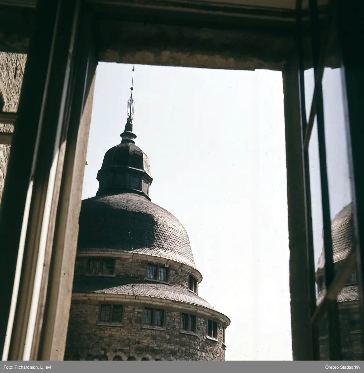 Titel: Övre delen av sydvästra tornet på Örebro slott, 1960-tal