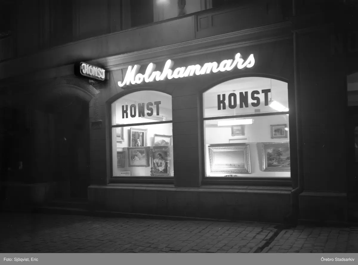 Skyltfönstret med belysning kvällstid, 1949