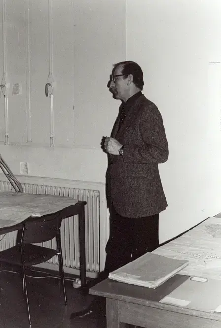 Studiebesök på Lantmäterienhetens kartarkiv på Länsstyrelsen 1980-11-29.