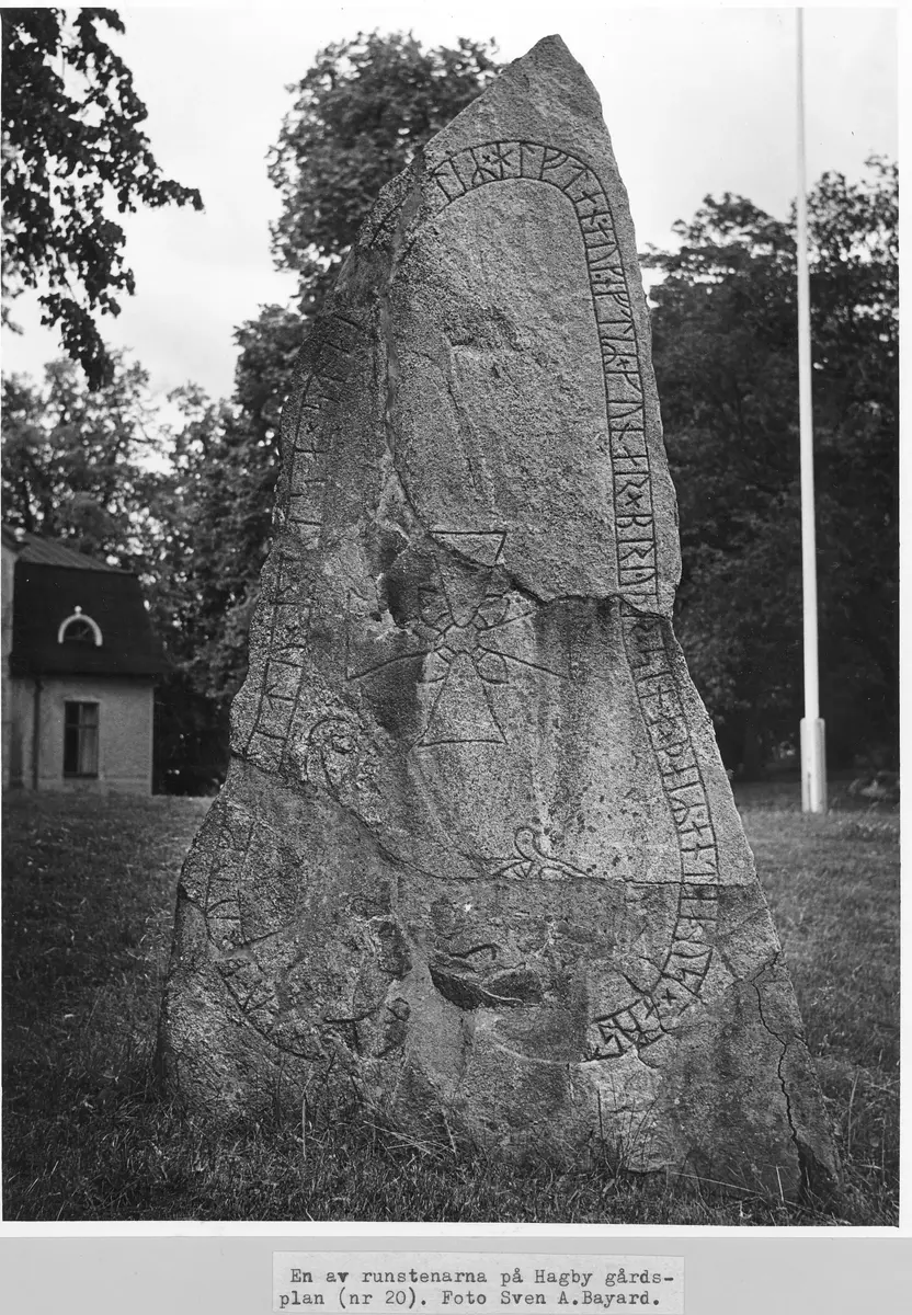 En av runstenarna på Hagby gårdsplan. U153