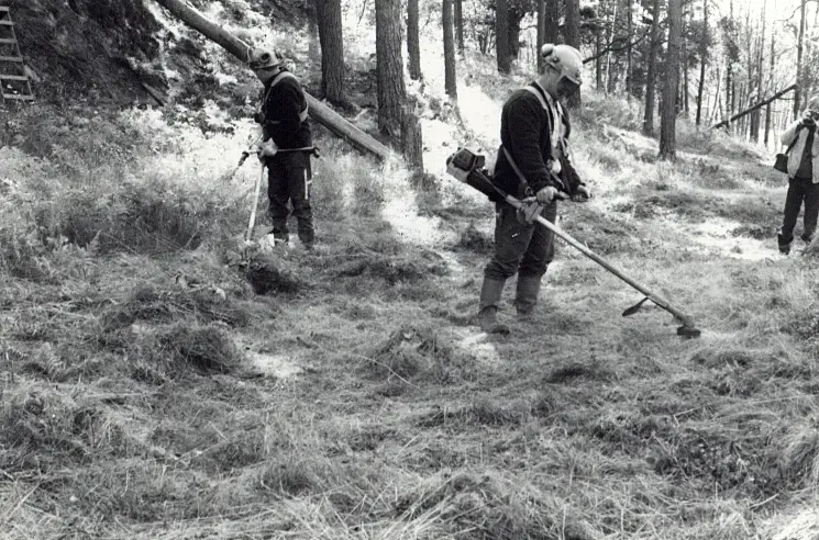 Höstutflykten 1986. Röjning på Söderbygravfältet i Haninge kommun.