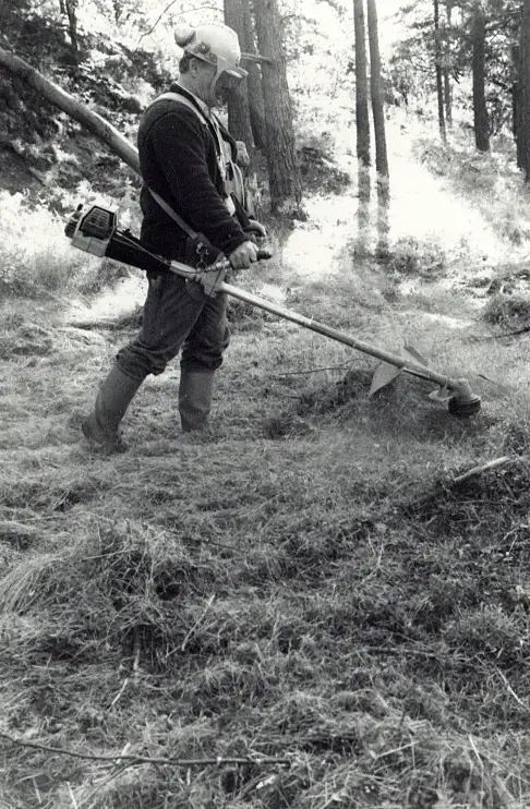 Höstutflykten 1986. Röjning på Söderbygravfältet i Haninge kommun.
