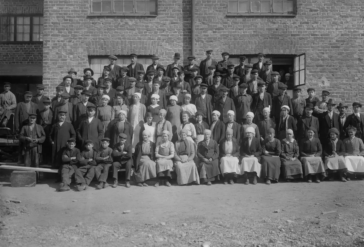 sverige, optimus personal vid fabriken i upplands väsby1910