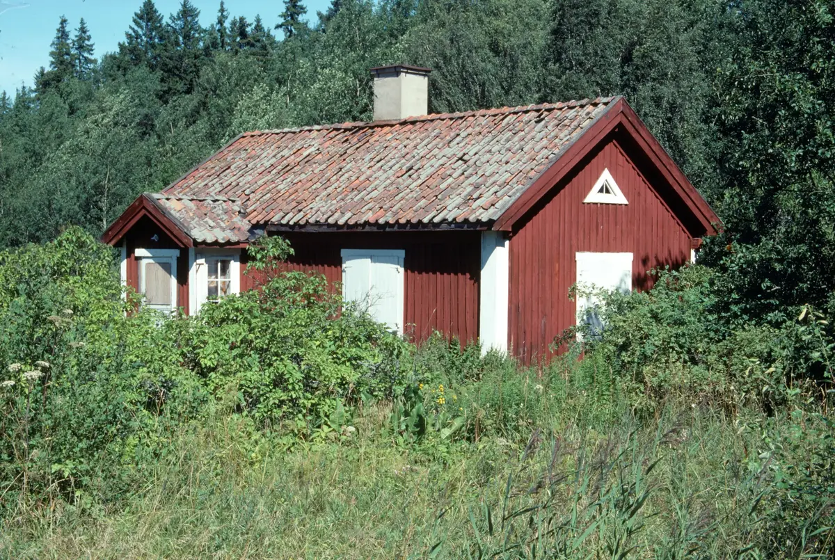 Grindstugan till Hagby, nu riven. Låg från Hagby räknat vid den först tvära S-kurvan på vänster sida om vägen.