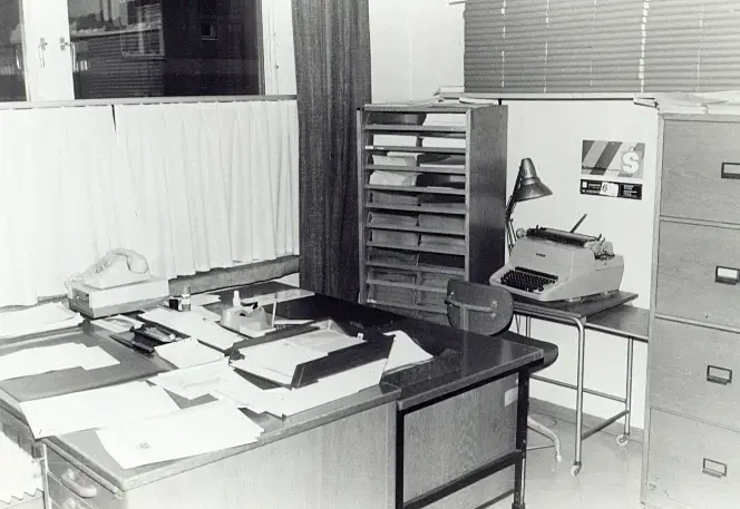 Kansli nr 2, första egna rummet i R.f H. Rutger Fuchsgatan 4, Stockholm november 1979.