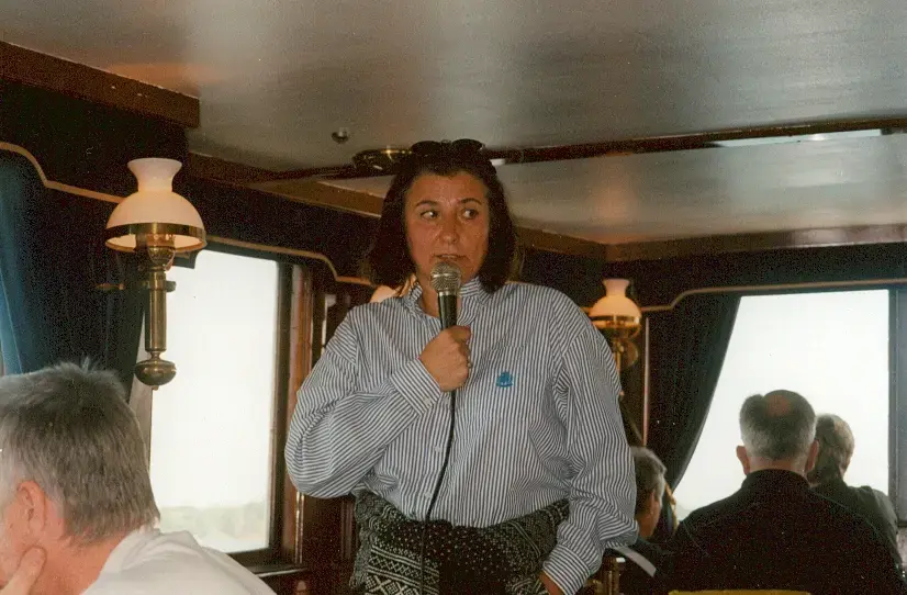 Gabriele Prenzlau-Enander guidar på skärgårdsutflykten till Möja vid riksstämman 2000.