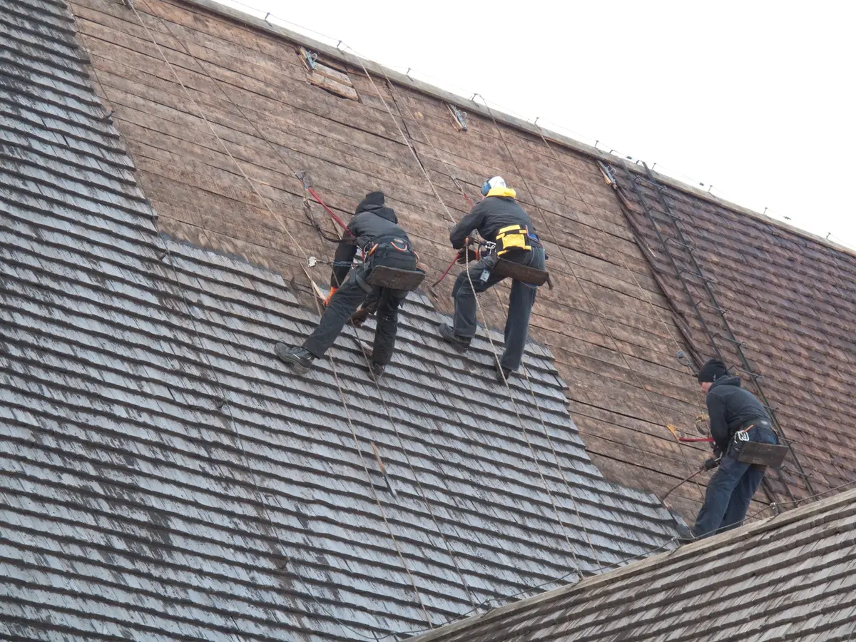 Omläggning av spåntak på Malsta kyrkas norra takfall.