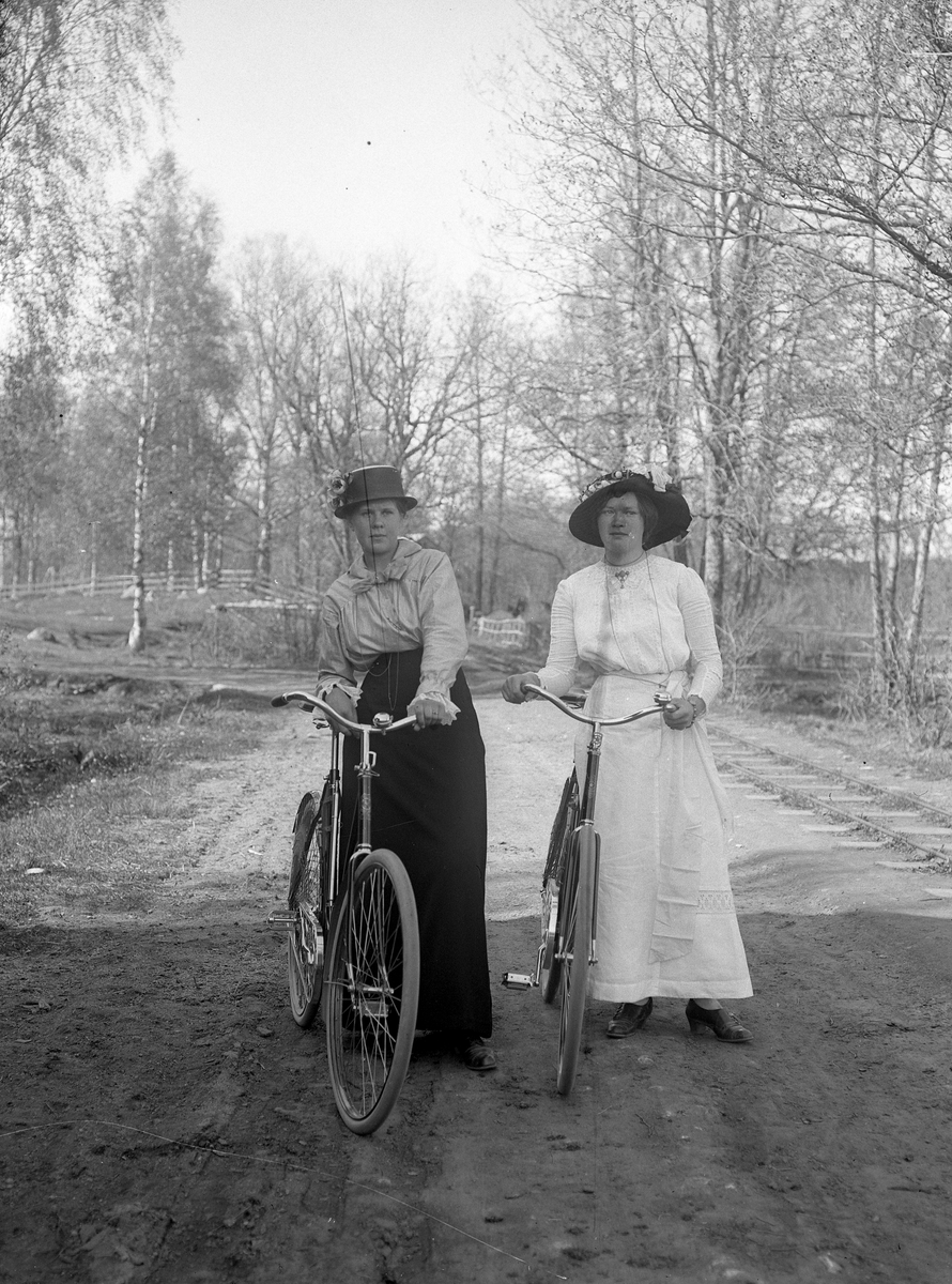 Två kvinnor med cyklar på Ryssvägen