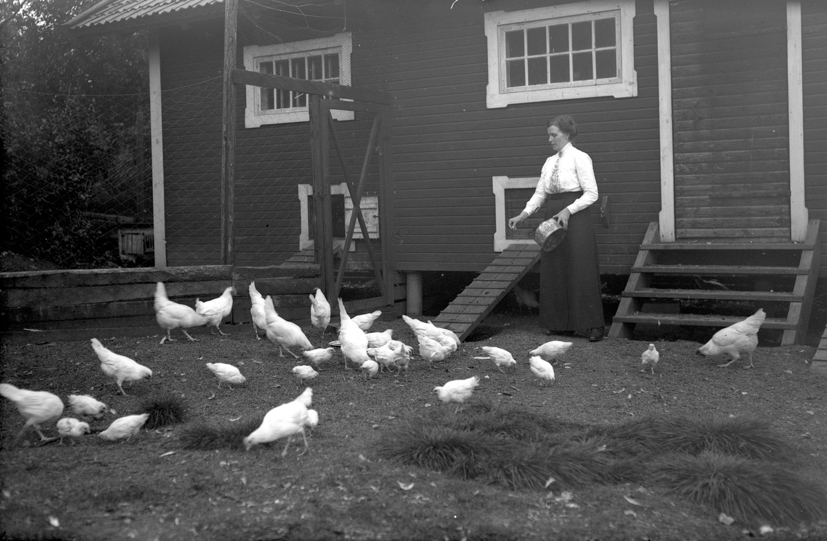 Kvinna matar hönor på herrgården