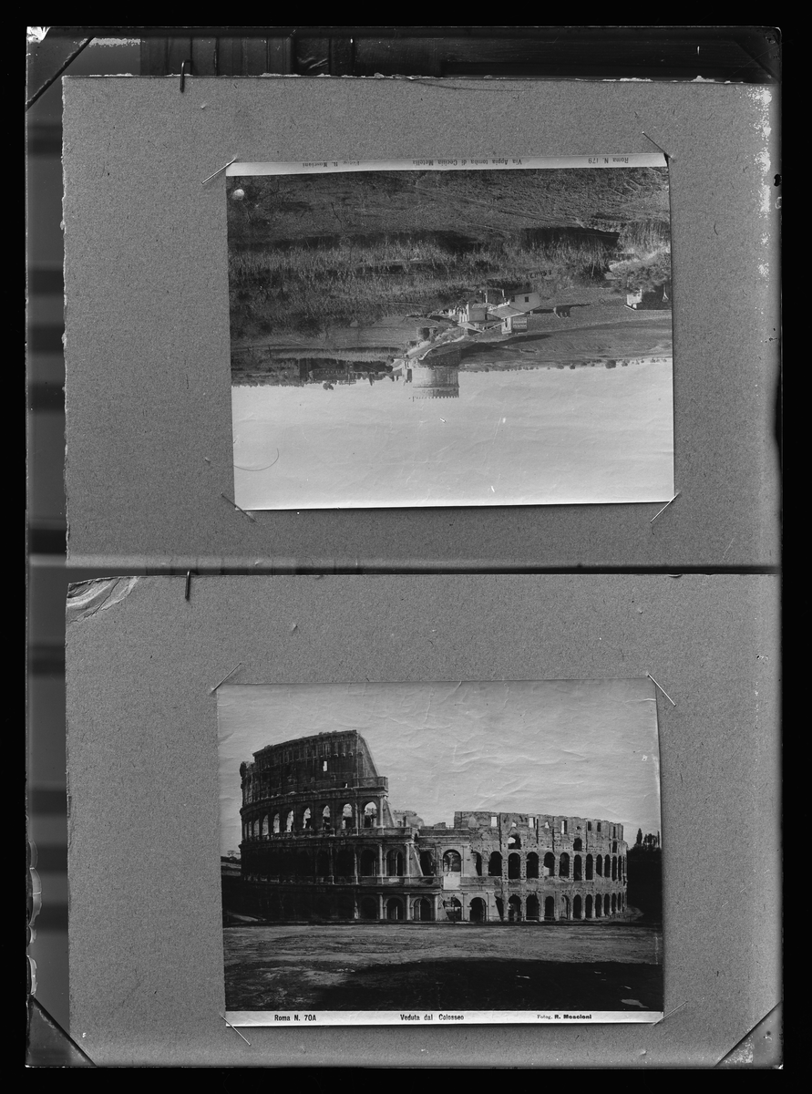 Avfotograferade sidor ur bok. Colosseum och Tomba di Cecilia Metella, Rom. Dir. Celsing, Kolbäck.