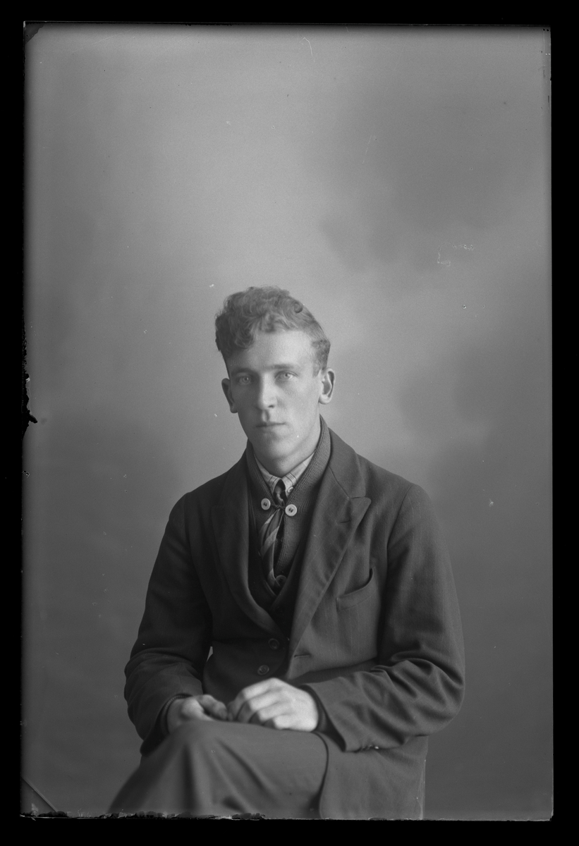 Titel: Mansporträtt, bilpass, Vallrad Karlsson, Tuna, Hallstahammar. Ur Gustaf Åhmans samling.