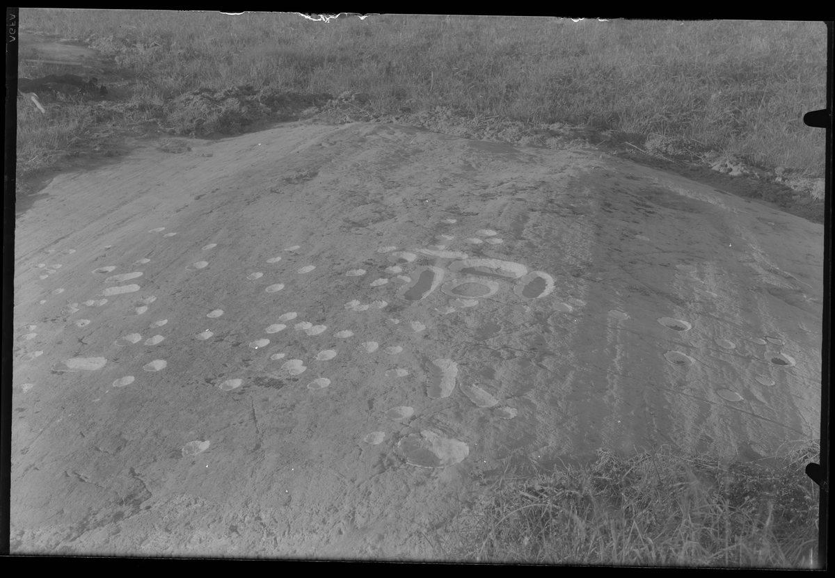 Skålgropar å en berghäll. Broby, Björksta, Västmanland.
