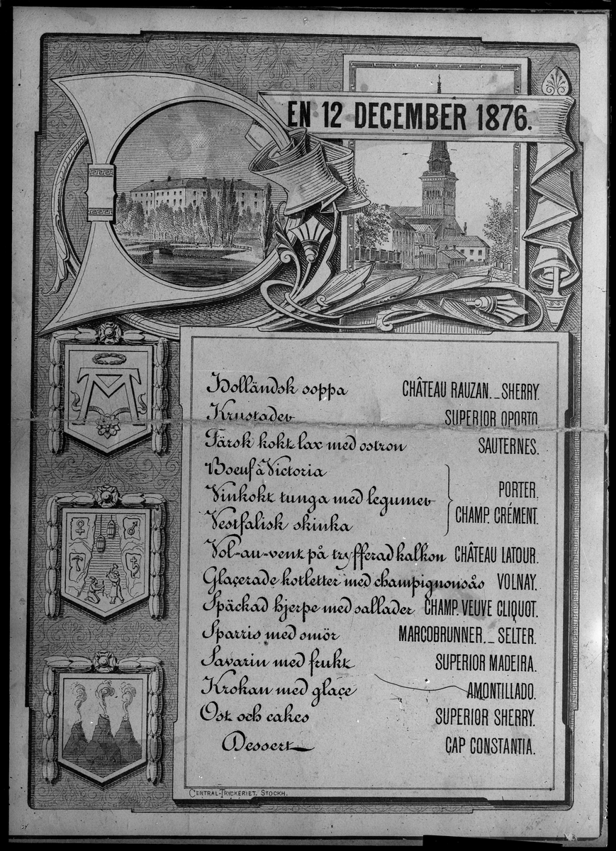 Matsedel 12 dec 1876 vid invigningen av SVB-banan.