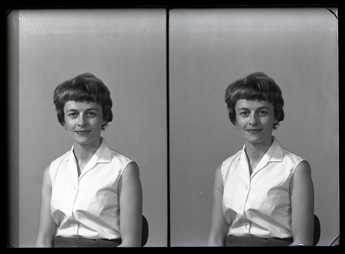 Titel: Kvinnoporträtt, pass, Fru Hahne, Skomakarevägen 2 B, Kolbäck. Ur Gustaf Åhmans samling.