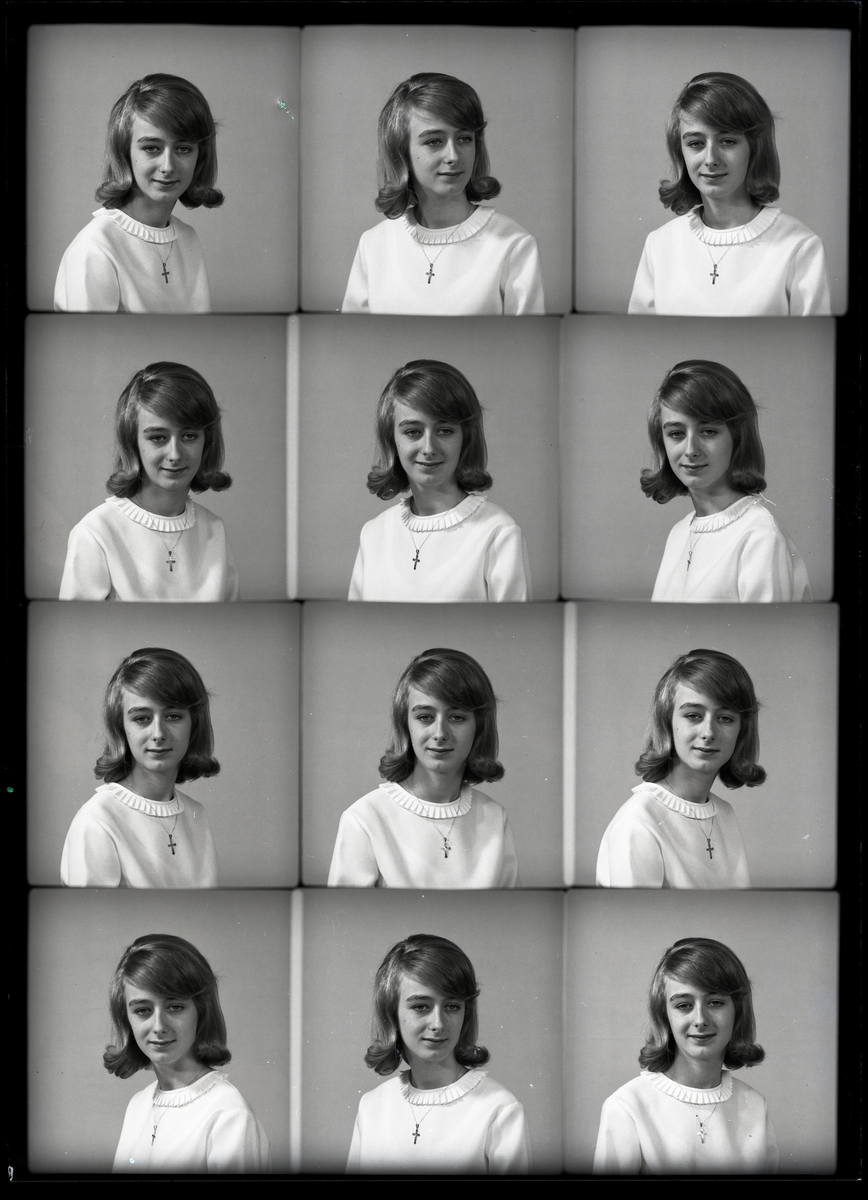 Titel: Porträtt, Konfirmation, Gerd Viggeby, Ridskolan, Strömsholm. Ur Gustaf Åhmans samling.