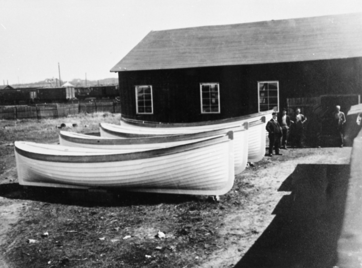 Varbergs Livbåtsvarv låg vid nuvarande Östra Hamnvägen ungefär där Terminal Väst har magasinsbyggnader just nu. Bilden är från sent 1930-tal. Varvet upphörde vid krigsutbrottet 1939 - då skulle nämligen inte längre livbåtar vara av trä utan av aluminium.