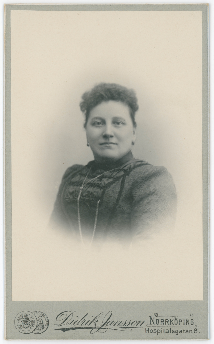 Porträtt på Fru Edla Runqvist. gift med verkmästaren Carl Rundqvist vid Lithografiska AB, Jönköping.