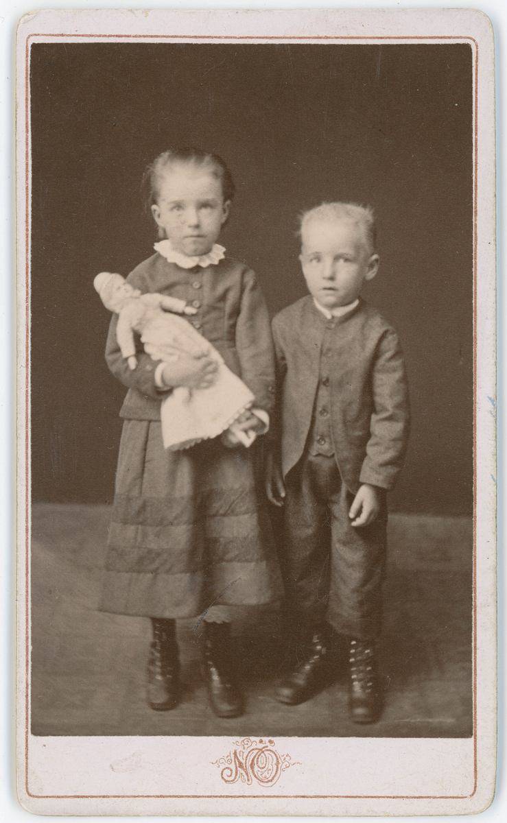 Porträtt på Anna Rosengren med brodern August Rosengren, Huskvarna. Anna Rosengren född 9 april år 1876.