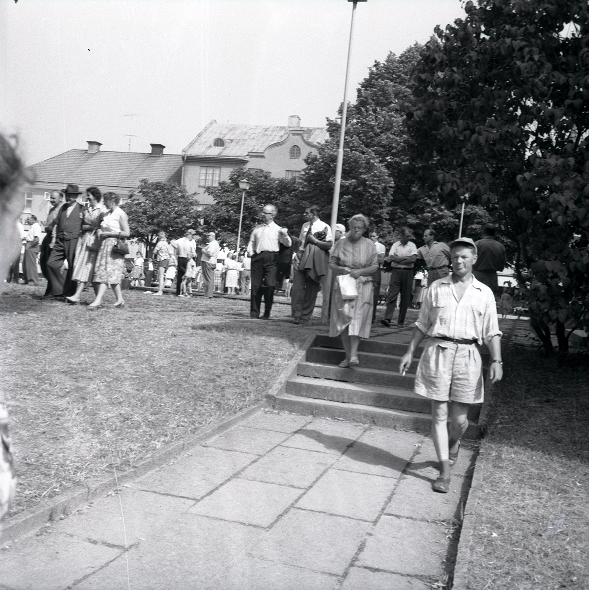 En grupp med människor, förmodligen i Borgholm. Bild tagen i samband med ölandsbränderna. Göran Johansson blev i tingsrätten dömd som skyldig men friades i hovrätten.