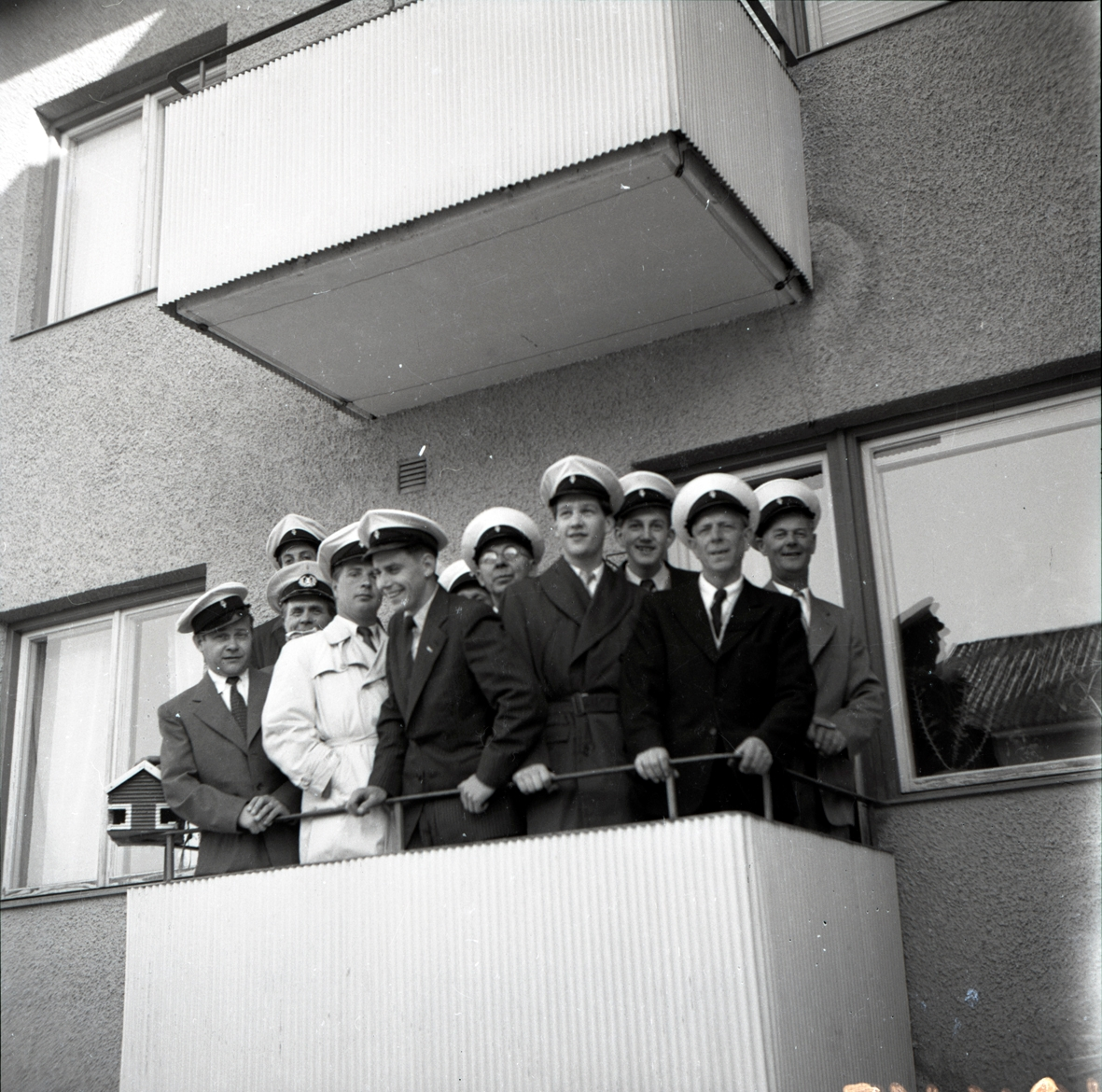 Manskör på balkong vid ett första majfirande i Borgholm.