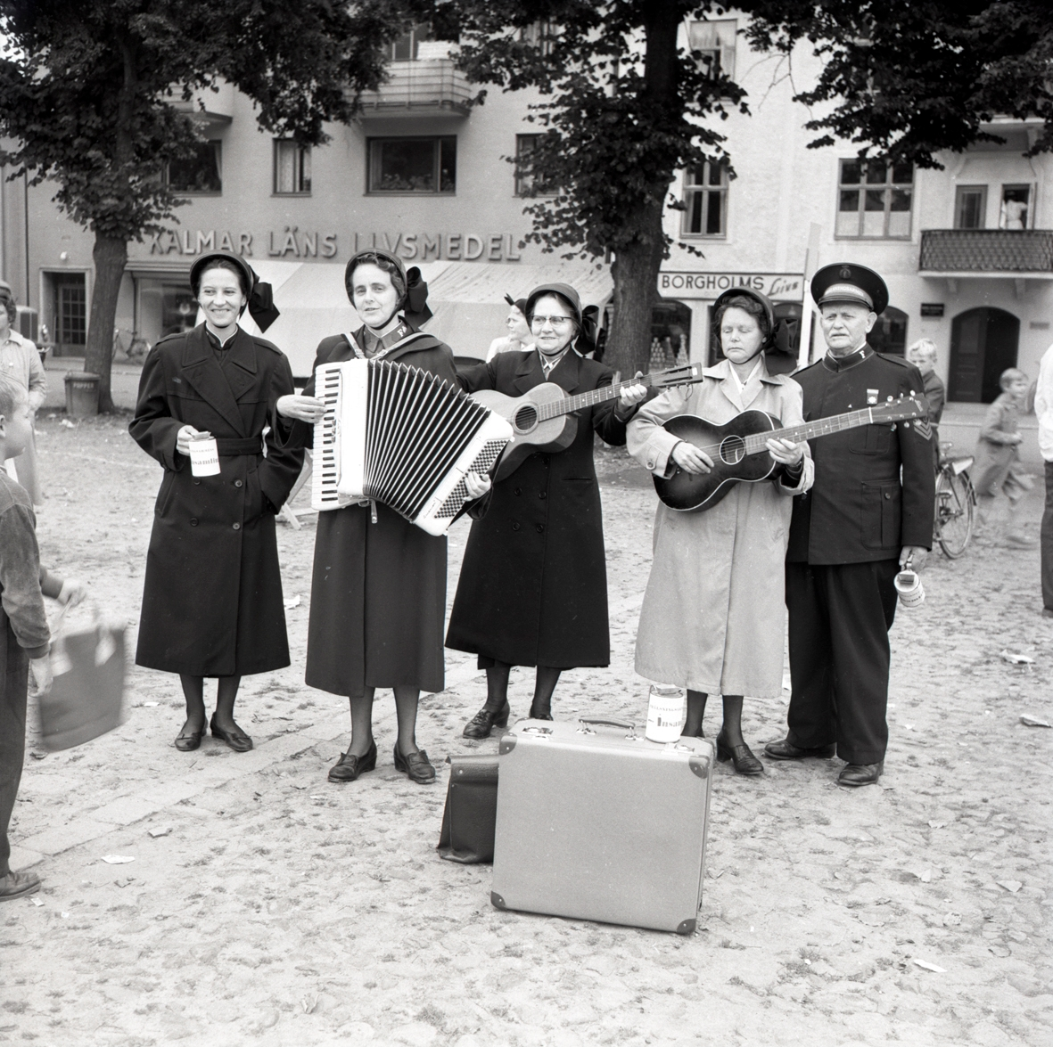 Frälsningsarmén underhåller på Borgholms marknad.