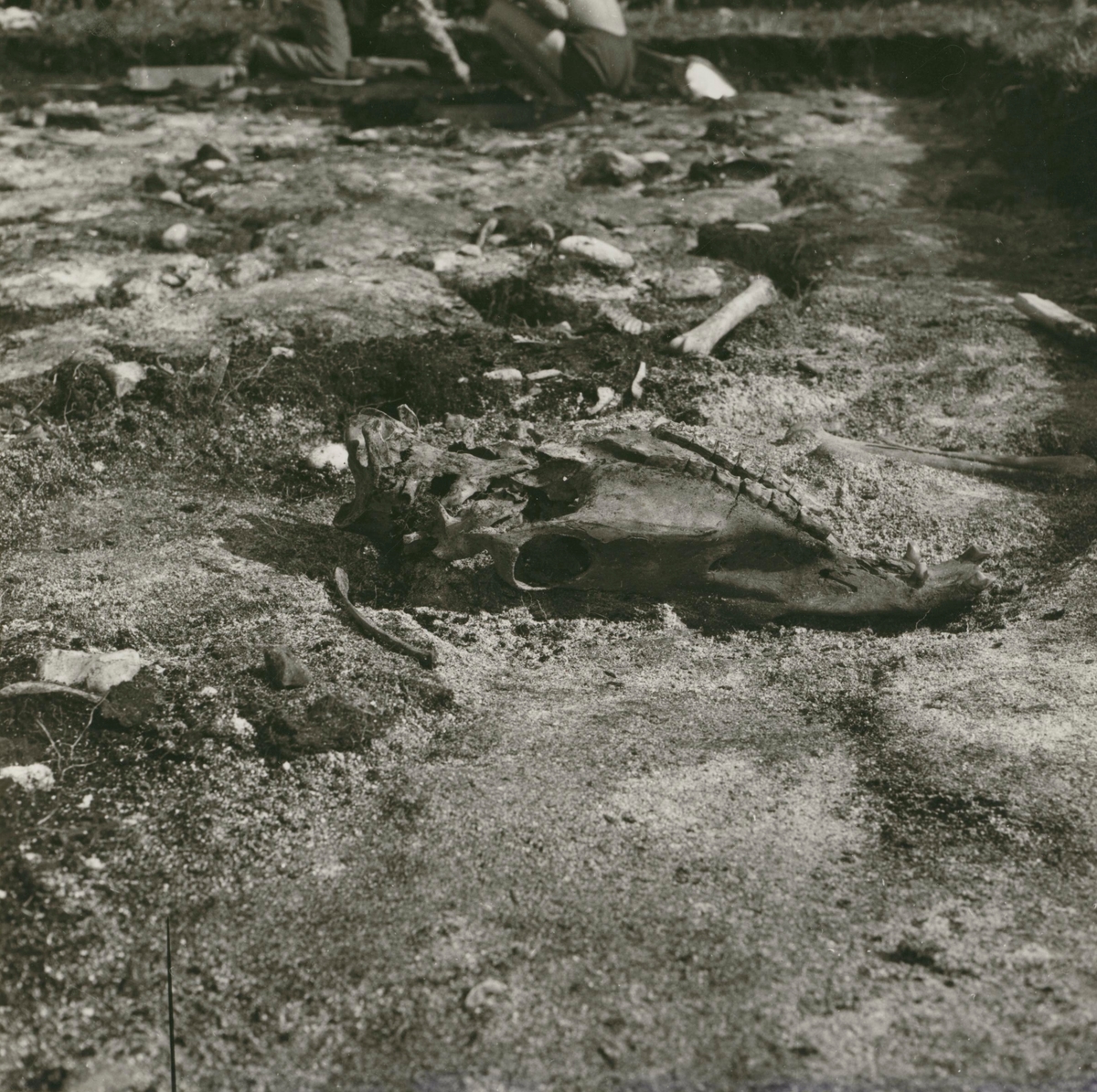 Hästkranium, påträffat vid utgrävningen av Skedemosse.