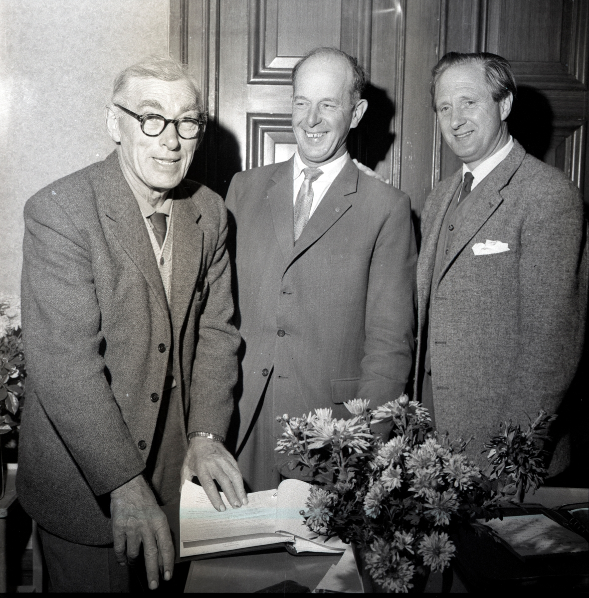 Tre politiker i Ekerum med en gästbok.