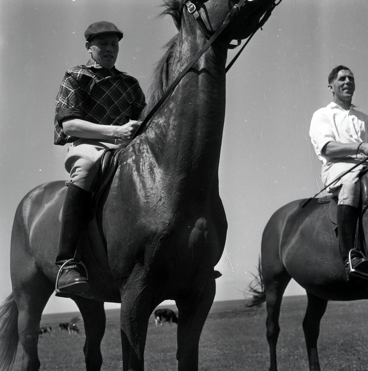 Petrus Kastenman (t.v.), rider remonter på Ottenby. Petrus Kastenman var en föregångsman inom svensk ridsport och vann bl a guld i fälttävlan i Ryttarolympiaden i Stockholm 1956. Han red där hästen Illuster (1948-1960) som fötts på Ottenby.